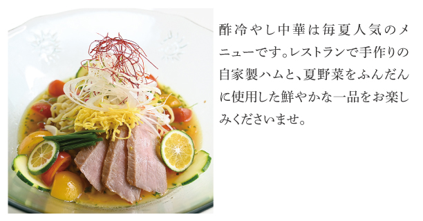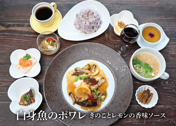 | Menu | ■食前酢 ■前菜 ■サラダ ■桷志田小鉢 ■スープ ■ライス ■黒酢スイーツ ■コーヒー ※仕入れ等の影響により、予告なしに変更になる場合がございます。ご了承くださいませ。 |