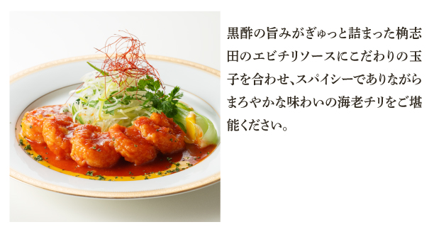 辛さとまろやかさのバランスが絶妙な、贅沢な海老チリをぜひご堪能ください。