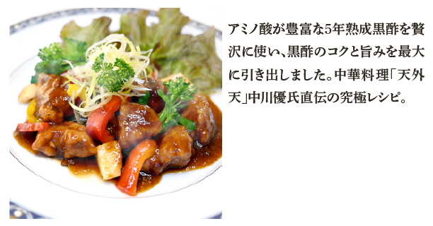 旨味成分が豊富な長期熟成黒酢を贅沢に使用し、コクと旨味を最大限に引き出しました。